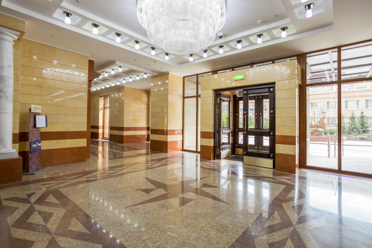 В шикарном холле с высокими потолками расположена стойка ресепшн с консьерж-сервисом. Для жителей комплекса работают сауна с купелью, зона SPA, спортивный зал с тренажерами, детский центр, прачечная, помещение для хранения шуб и сигарная комната. В центральной части внутреннего двора установлен действующий фонтан с зоной отдыха. Для юных резидентов оборудовали детскую площадку. За безопасность отвечает профессиональная служба охраны, ведется видеонаблюдение в холлах и по периметру.